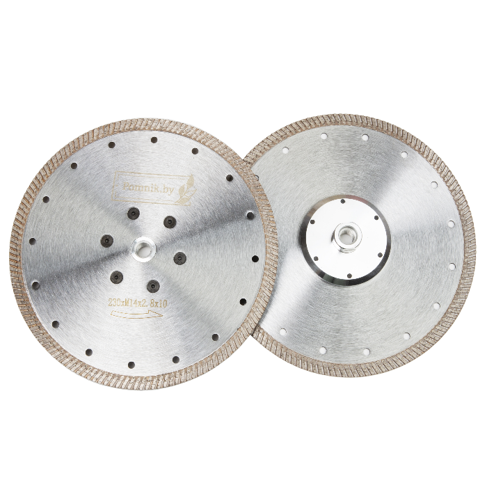 Алмазный диск по граниту TURBO отрезной резьба М14 фланец ∅230 предназначен для резки натурального камня, бетона, тротуарной плитки и вообще почти для всех твердых или абразивных строительных материалов.