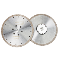 Турбированный режущий слой алмазного диска по граниту помогает выталкивать шлам, повышает скорость резания, способствует охлаждению алмазоносного слоя.